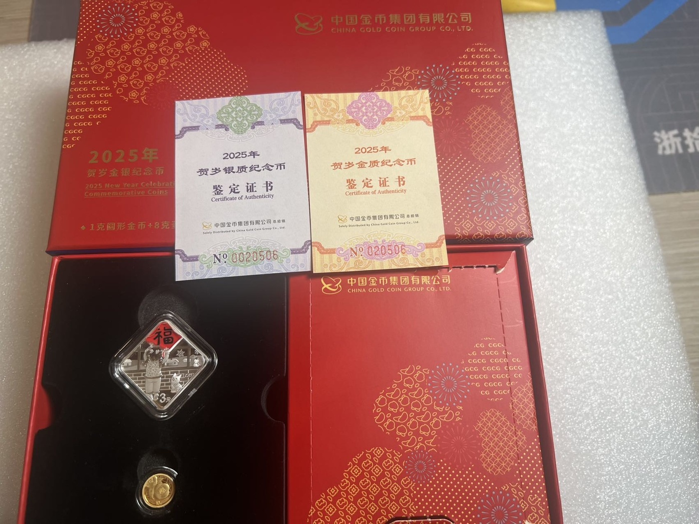 → 1400出售25贺岁金银币一套,号码020506