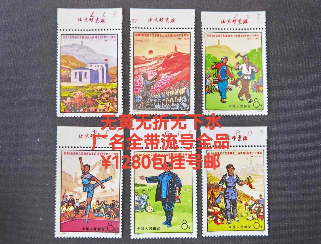 邮联单名全品210 西厢记单名全品198 总理金暗-3色210 纪念堂全品110 三运无折微黄260 T4大庆上角名横齿折290 兵马俑全品150