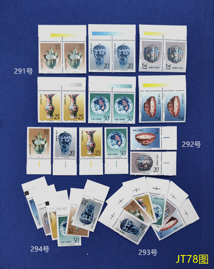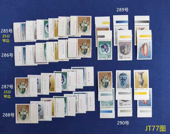 77图:285号 T166景德镇瓷器左上铭顺边25分窄边8元, 286号 景瓷左上铭顺边10元,