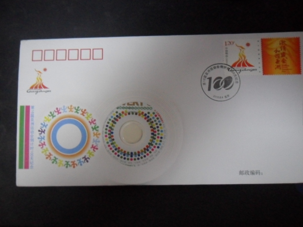 → 出;16届亚运会倒计时100天光盘镶嵌纪念封5套