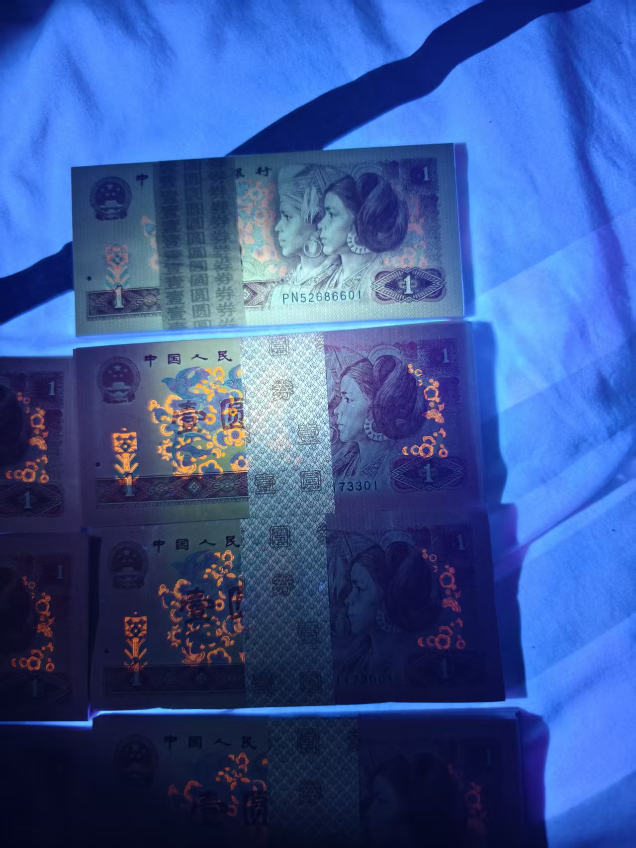 901XD冠璀璨金星,正面飞鸽图金星璀璨,格外耀眼,币面红色明显,背面两头金星特别耀眼,光泽无与伦比,我拿了一刀901其他刀币做了对比,一比便知其珍贵!高级藏品,该捆XD31173001~31174000,合计10刀,3333刀18000元,888刀18000元,999刀16800元,666刀16800元,555、222、111刀每刀16000元,001、401、701刀每刀13800元,抢到即是赚到。