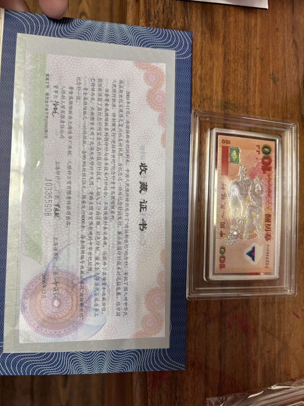 出售上海造币厂出品龙钞建国钞图案银条、128克每个x2、价格3350元每个