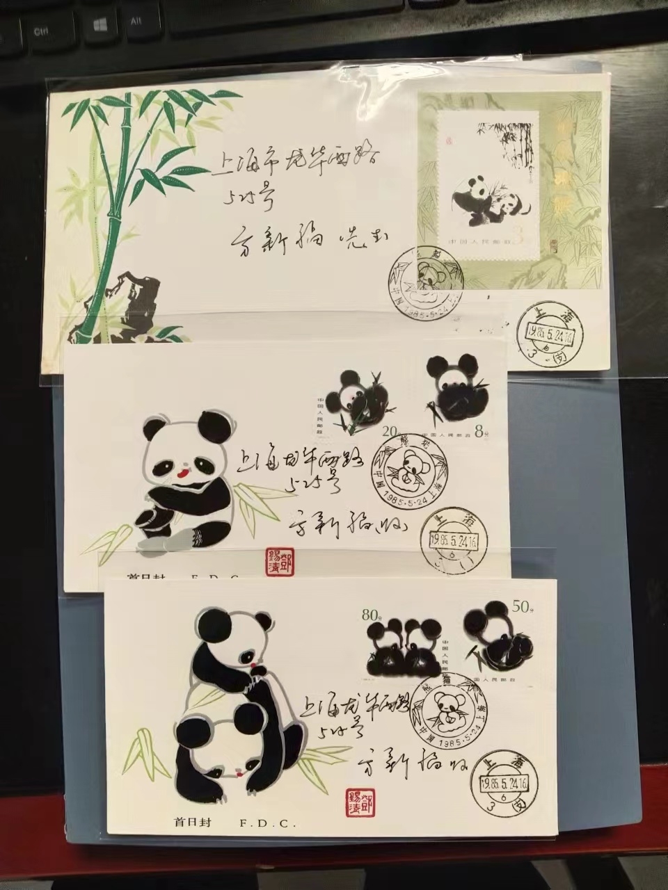 → 1985年熊猫,票张一套,首日戳。
