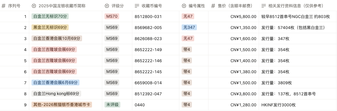 → 售9枚2025中国龙银ngc金兰首日标69/70分