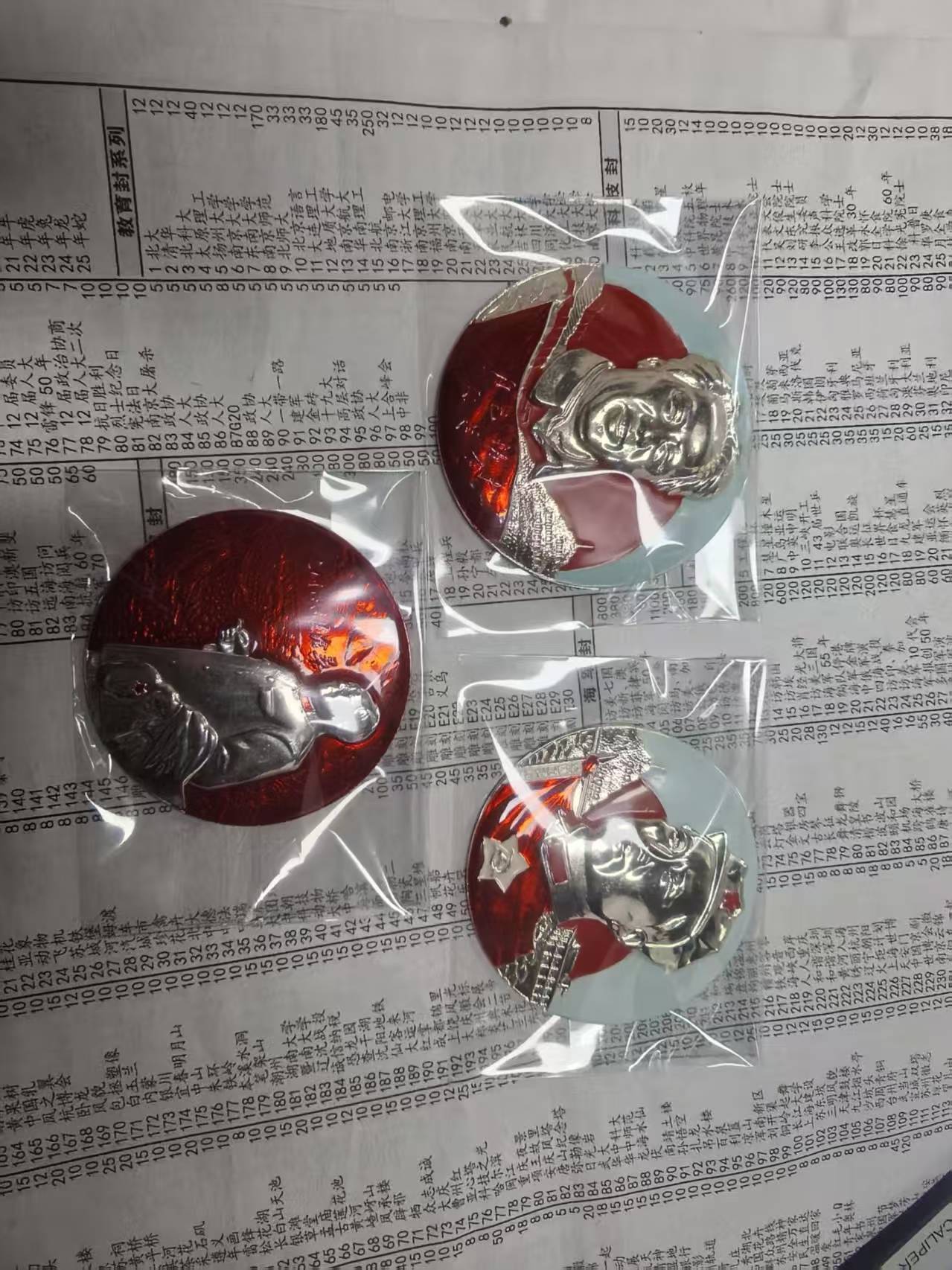 出7个基本全新的彩色相章,第一图大的直径70mm,其余2个52mm,第二图三个55mm到60mm的,品都非常好的一起出560元收藏佳品