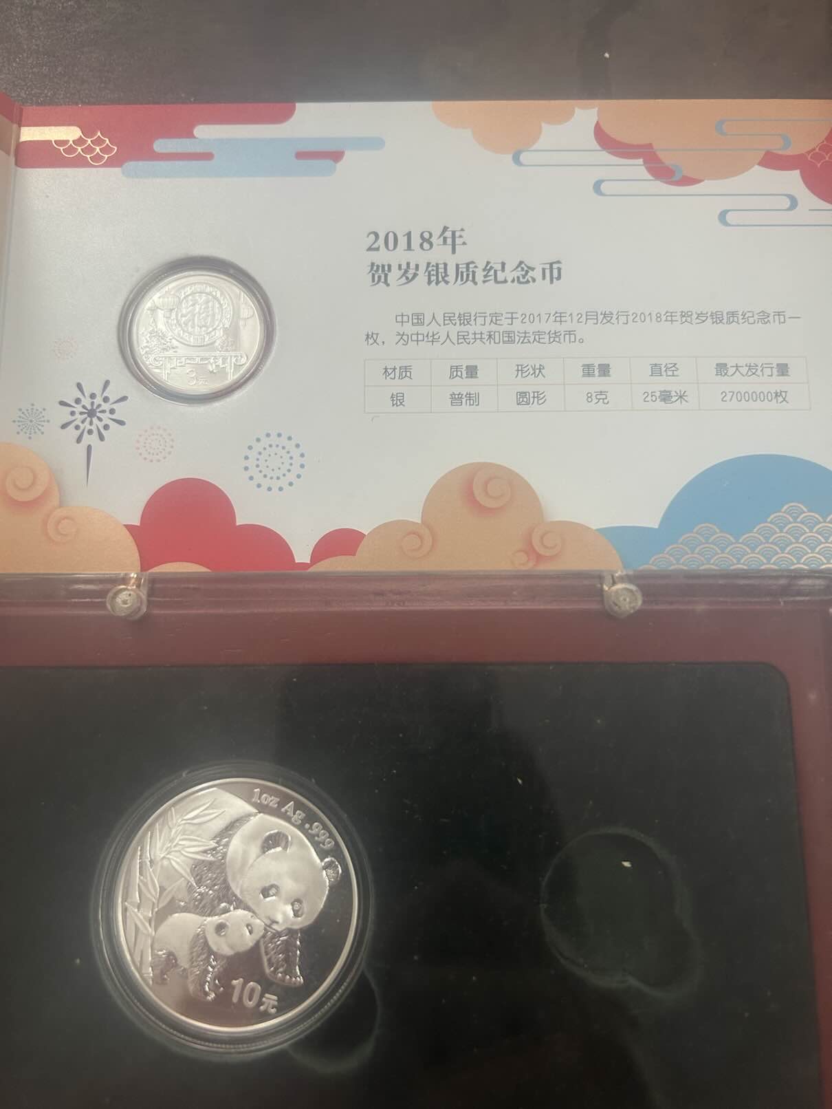 熊猫银币跟贺岁币一起39克,23一克出一起897包顺丰