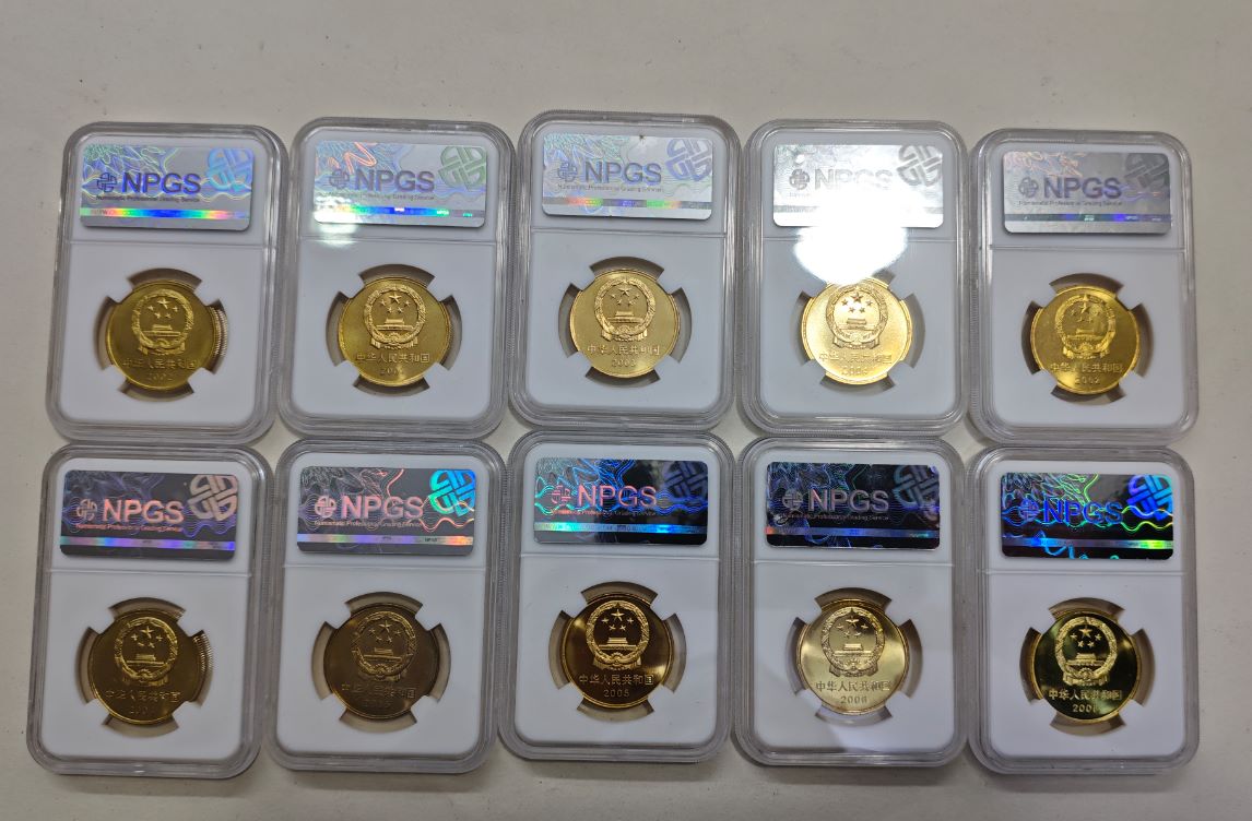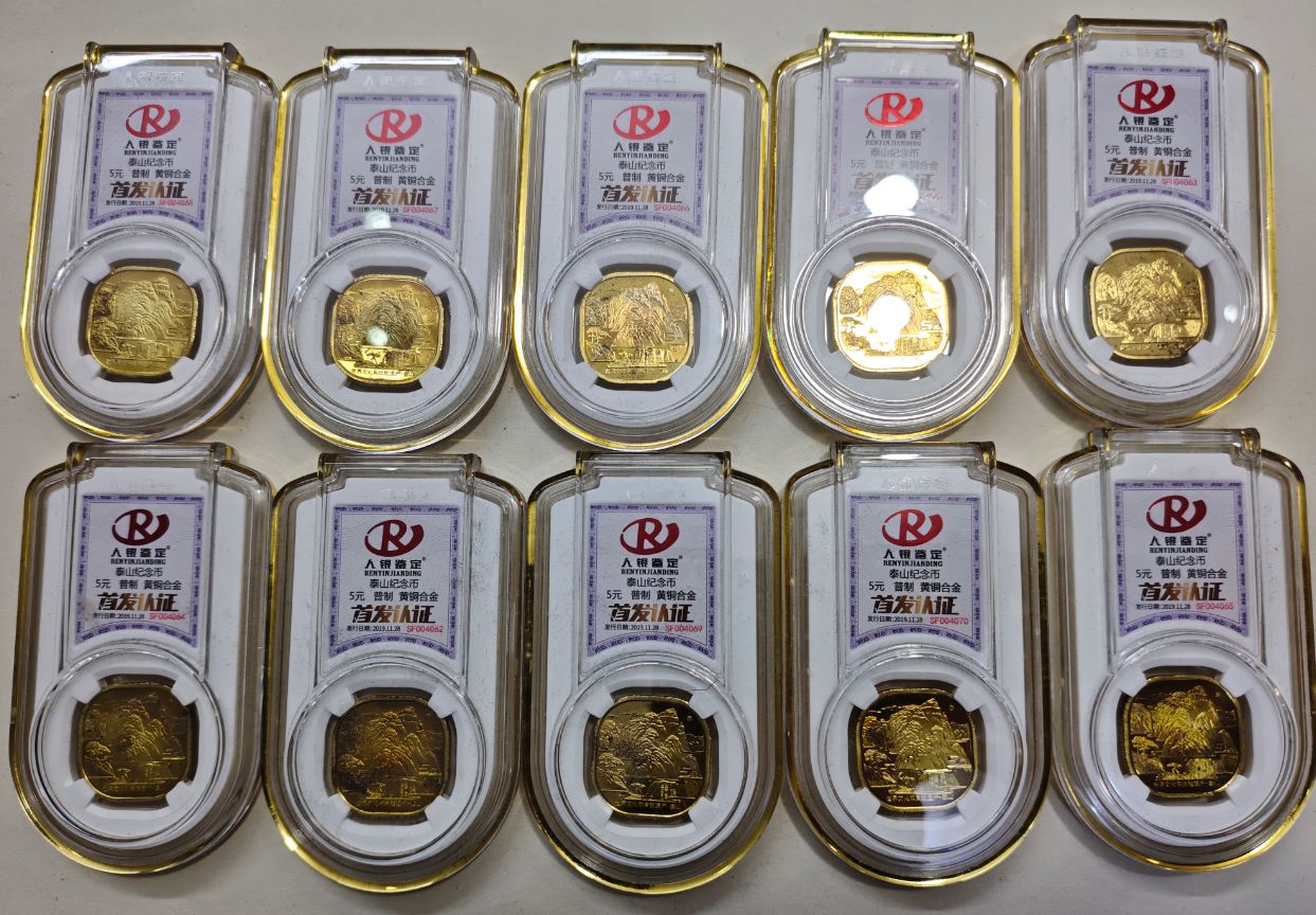 带鉴定盒遗产十枚一套无氧150元,带鉴定盒泰山,20枚x5.5,带鉴定盒建国70周年10枚x10.5,以上一起出
