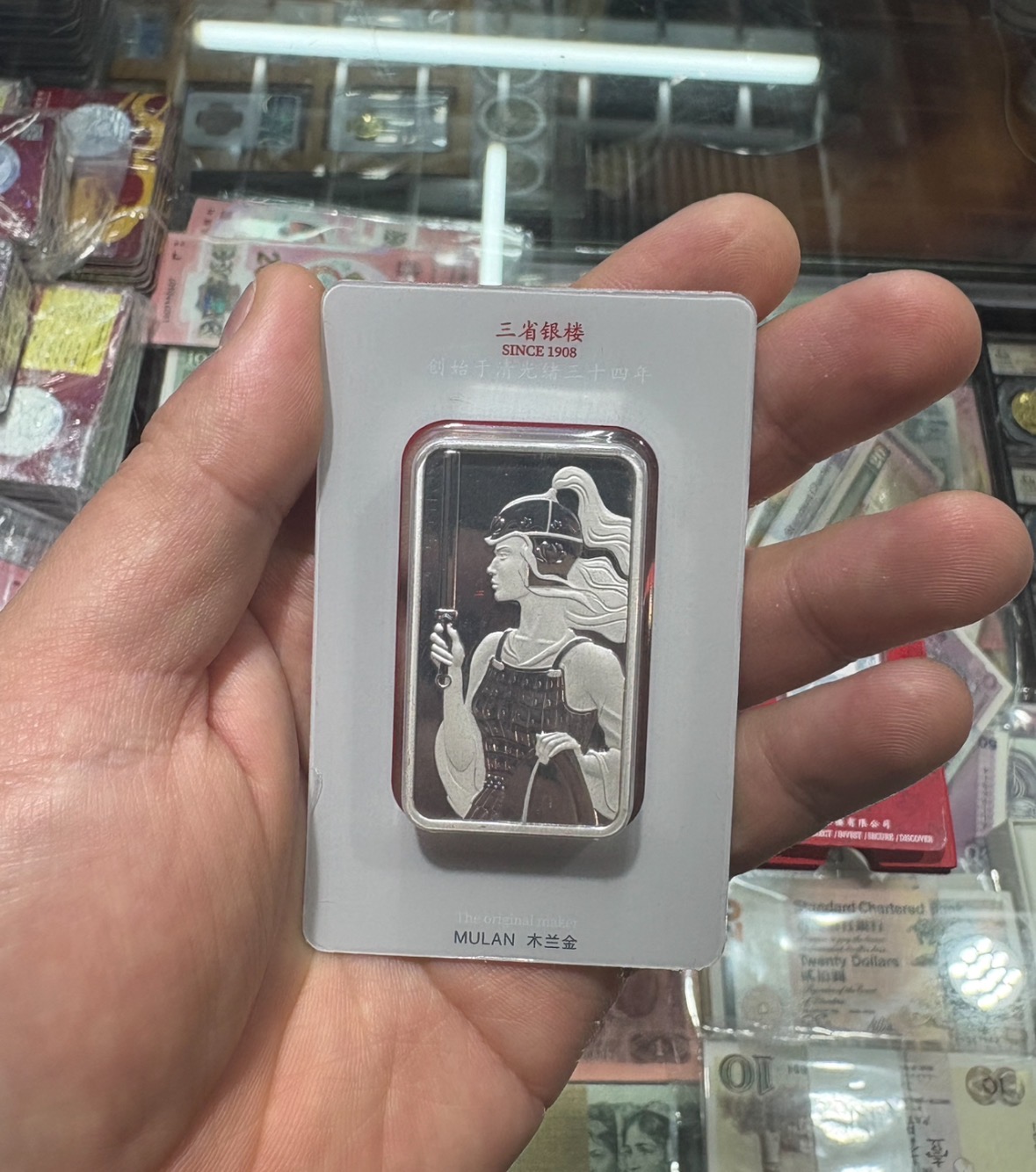 → 迷你木兰100克银条 封装卡币