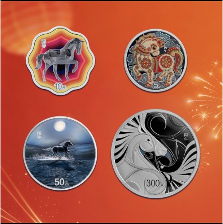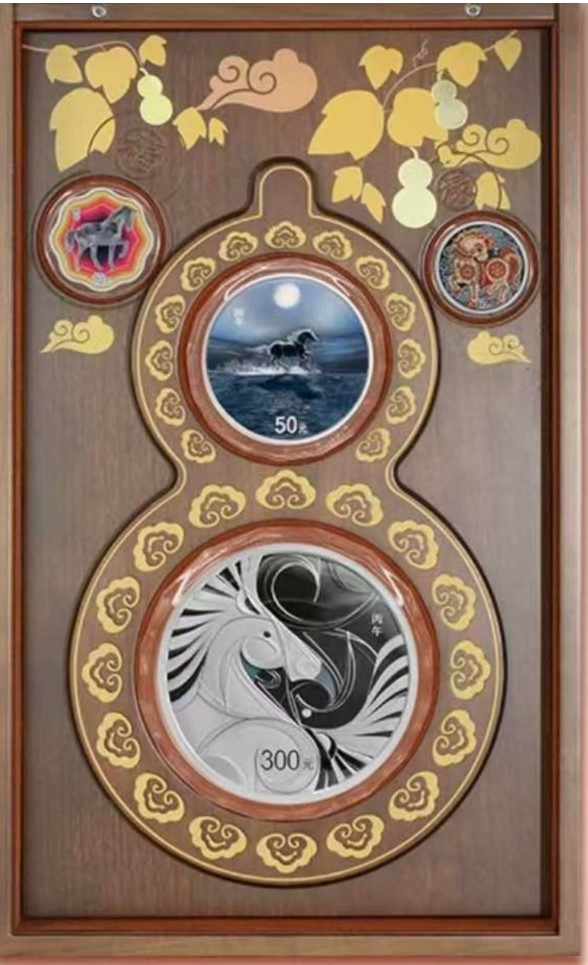 马年银币套装(包含1公斤银币+150克银币+30克梅花银币+15克彩银币)精美高档包装,证书号码尾3号同号