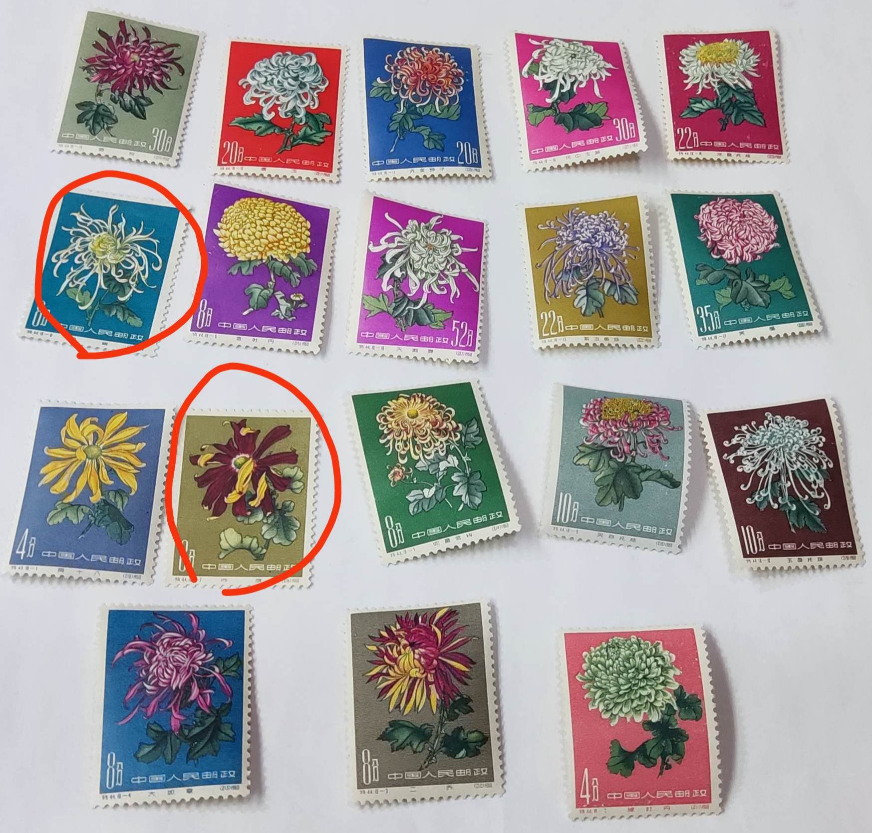 如图,菊花原胶上品一套,圈起来两枚无胶
