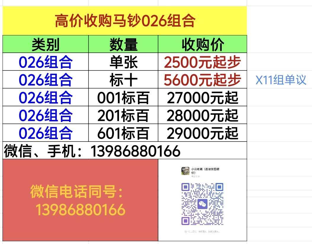 → 【026收购专贴】马钞026单张 026标十 026标百