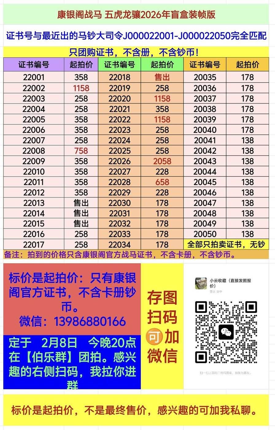 【配号】马钞大司令年份号 22001-22050 官方证书