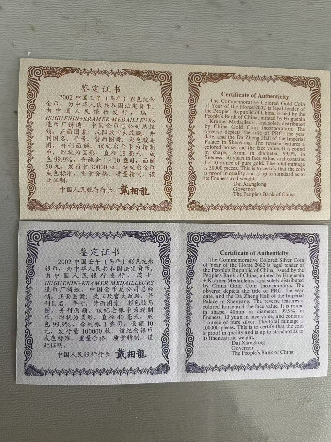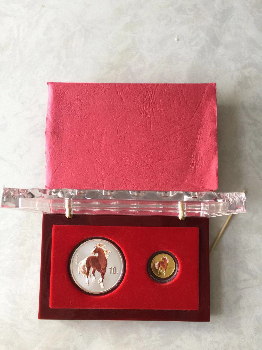 2002年生肖马彩色金银币一对