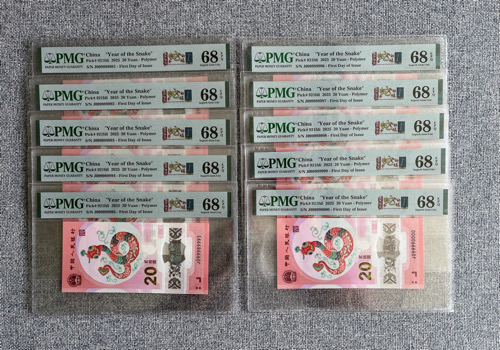 [原创]蛇钞 J099989991-J099990000 标十,PMG68首日四标。