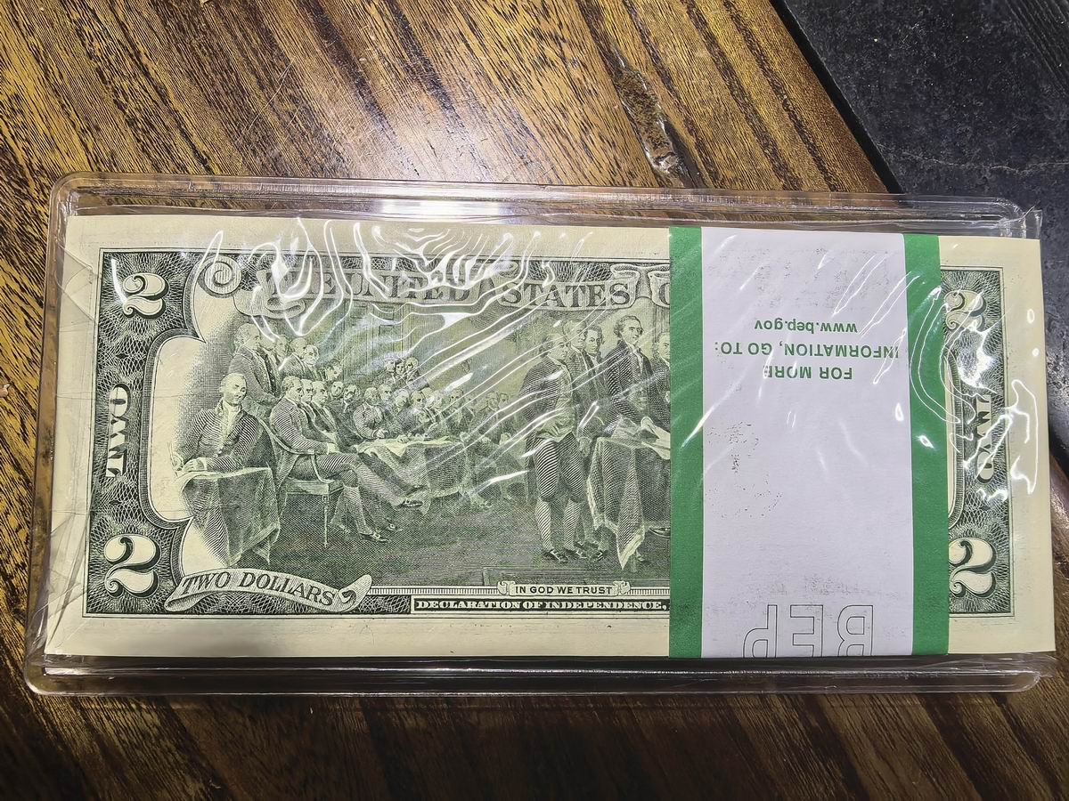 → 老版一美元,两美元百张连号