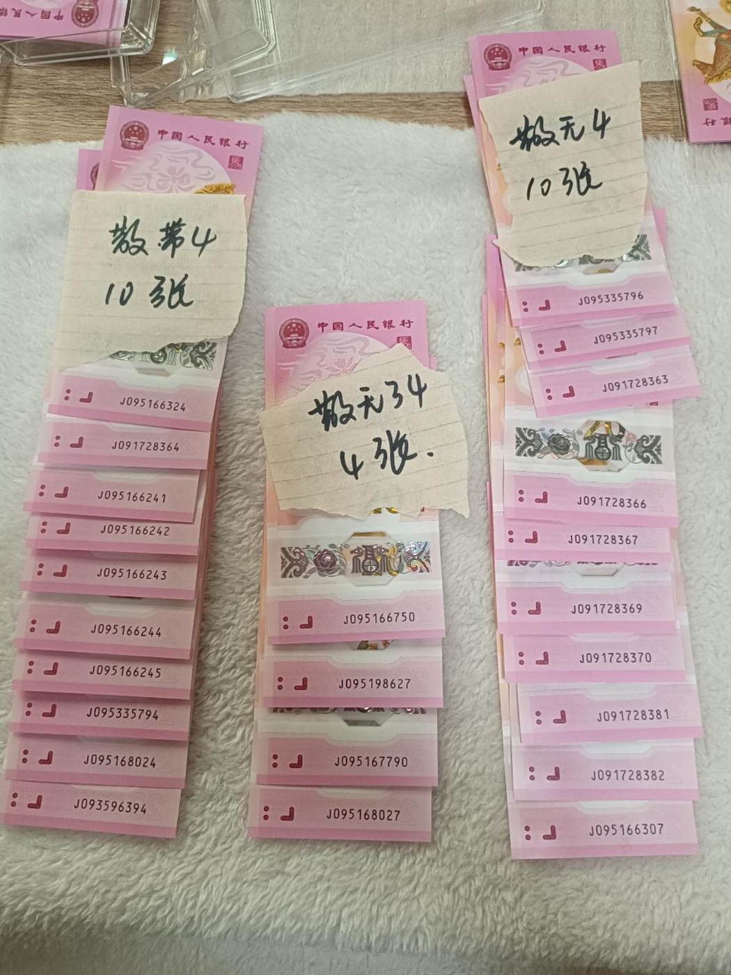 出带4标十,12组x310元,散的带4,无4,无34,共24张x31.8元