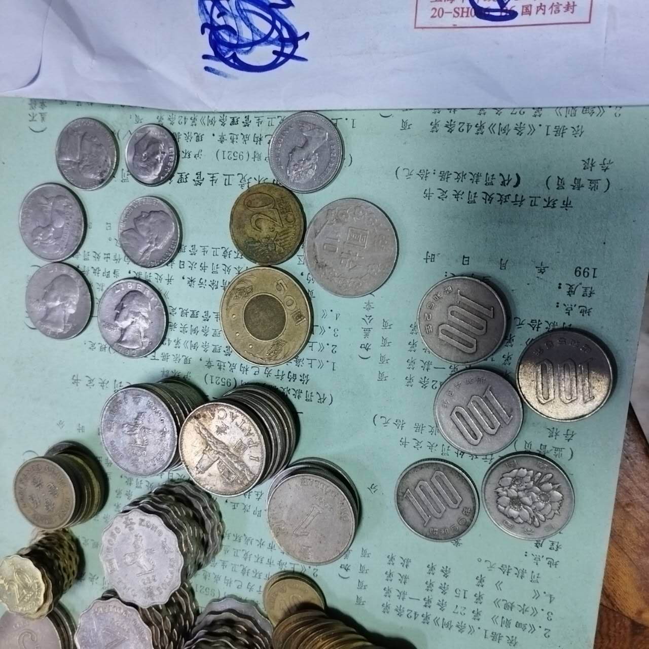台币60元,日币500元,美元和-欧元几角,一起如国图清单共164元,算160元包邮