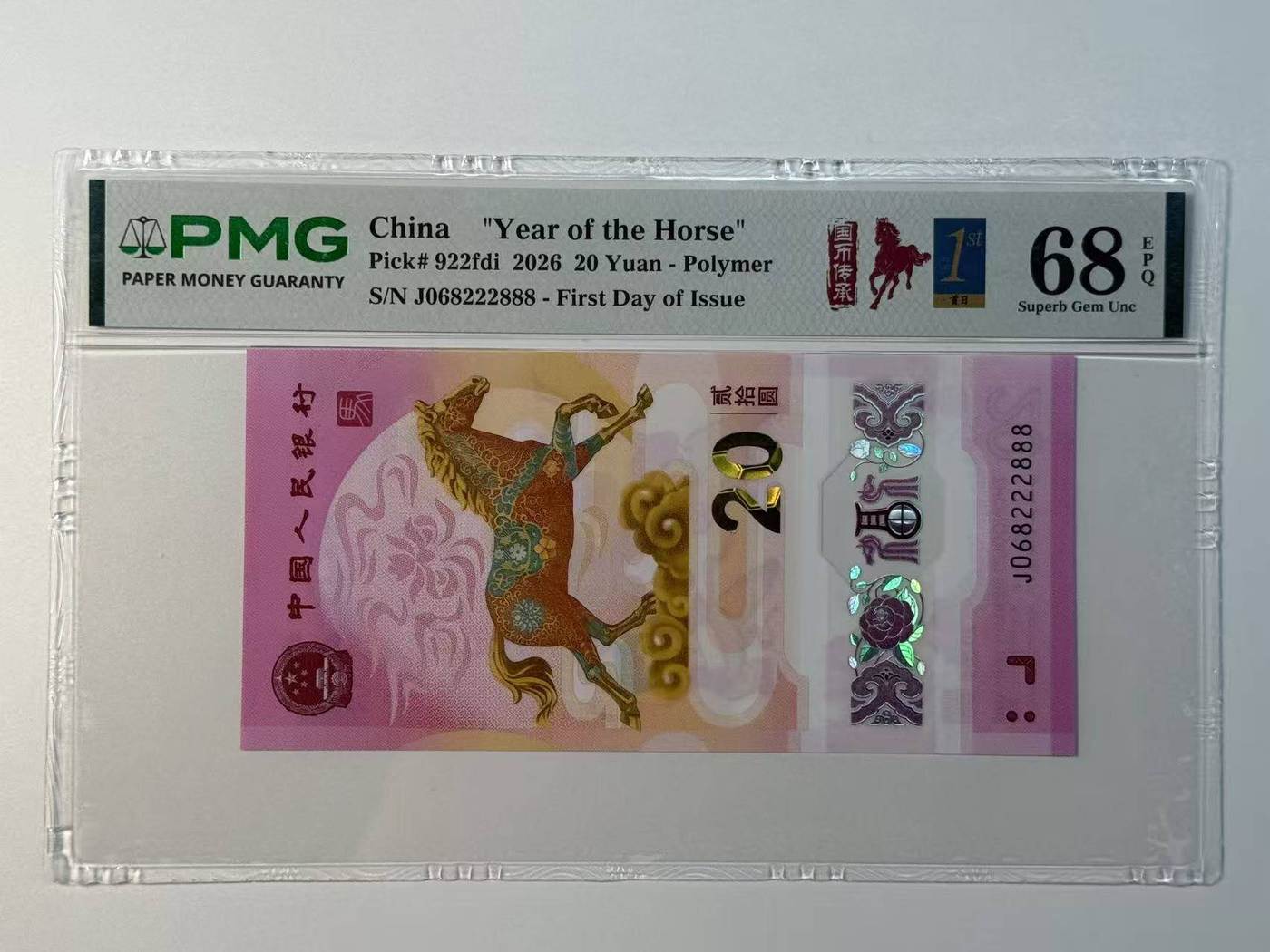 出马钞满号全偶068222888首日金兰标pmg68分