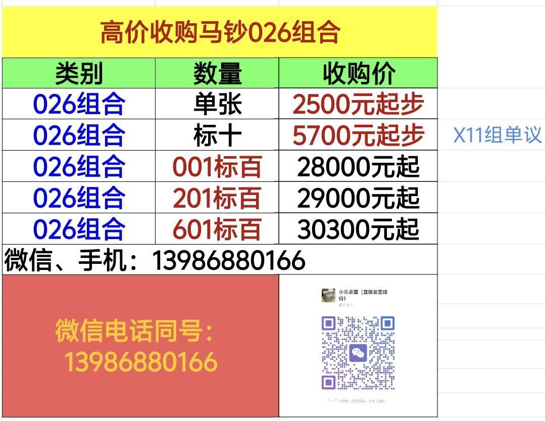 → 【026收购专贴】马钞026单张 026标十 026标百