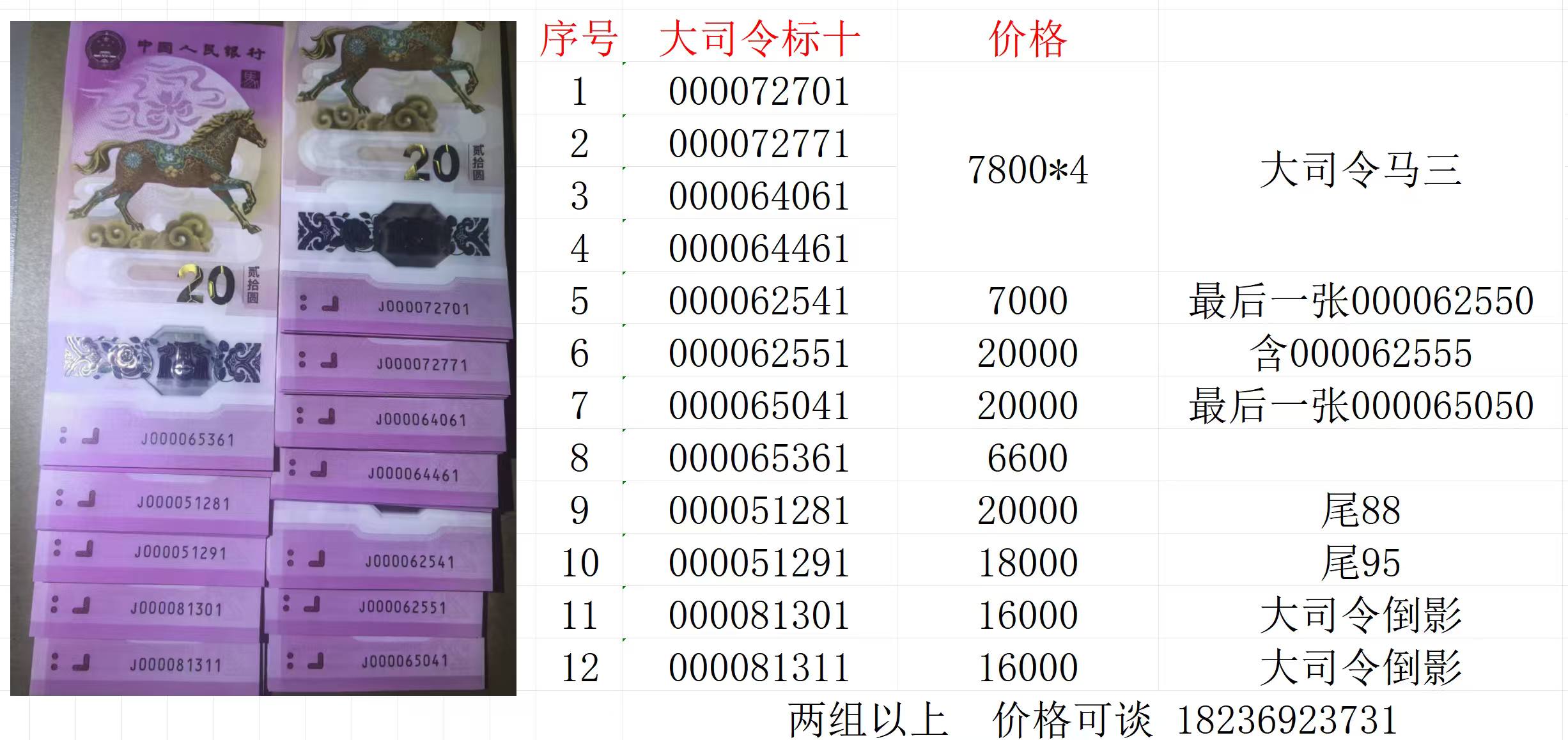 售《马钞大司令标十》无347 ——倒影——马三组合