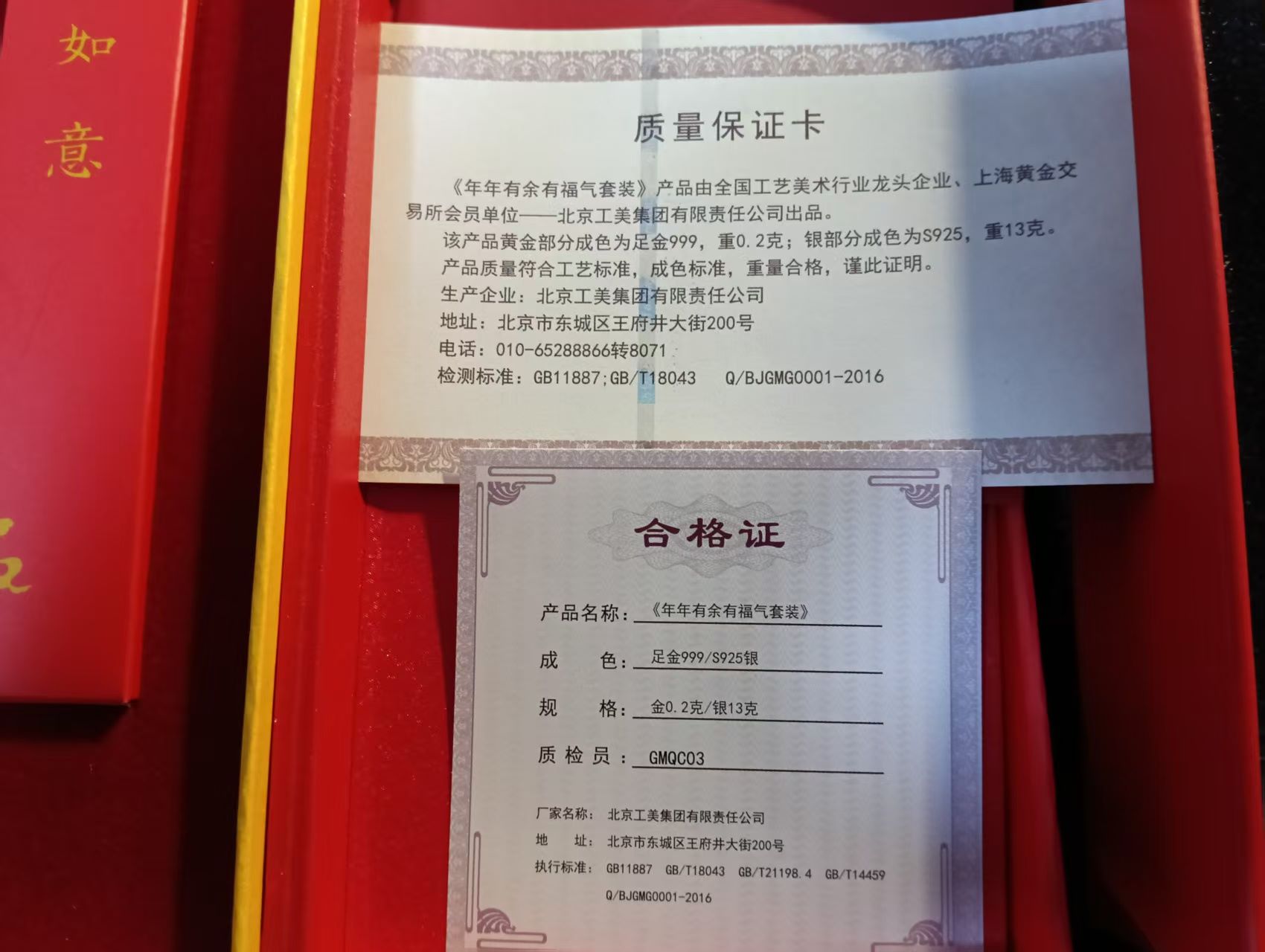 工行故宫联名年年有余有福气套装,带原包装盒和证书,