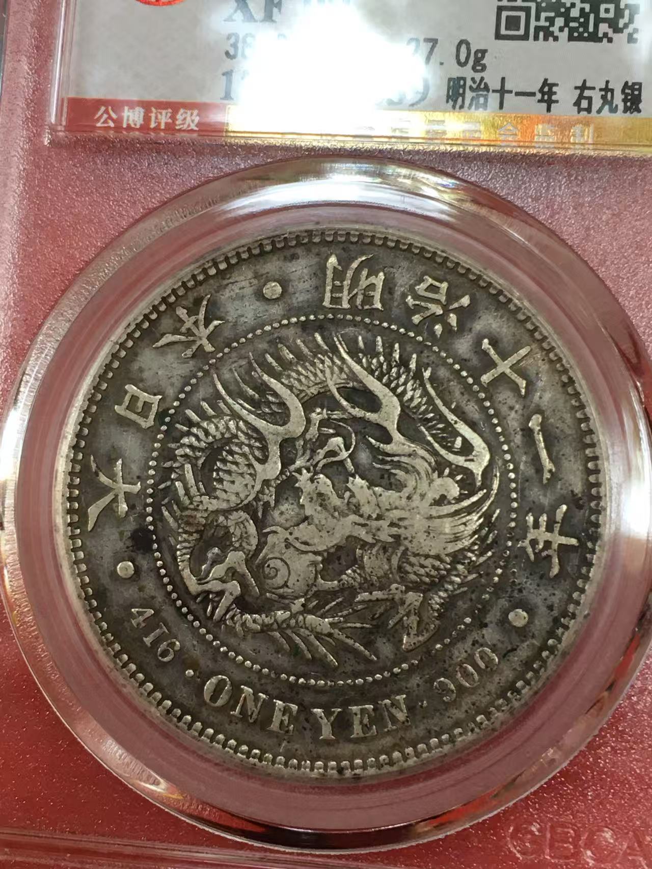 原味北京公博XF09明治十一年一圆深雕版,极稀少