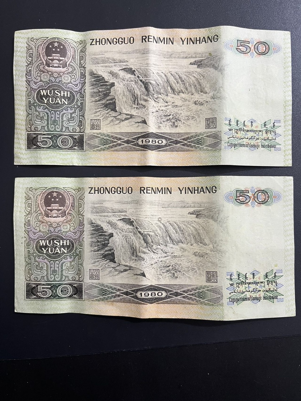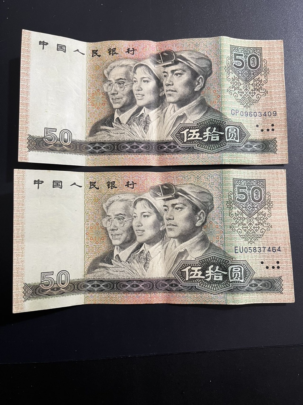四版8050两张,原票软弯折如图,通走惠售550一张包邮,联系确认