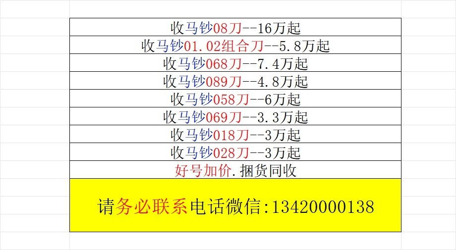 收马钞08组合刀01.02.068各种马二马三刀货(过年不休息)