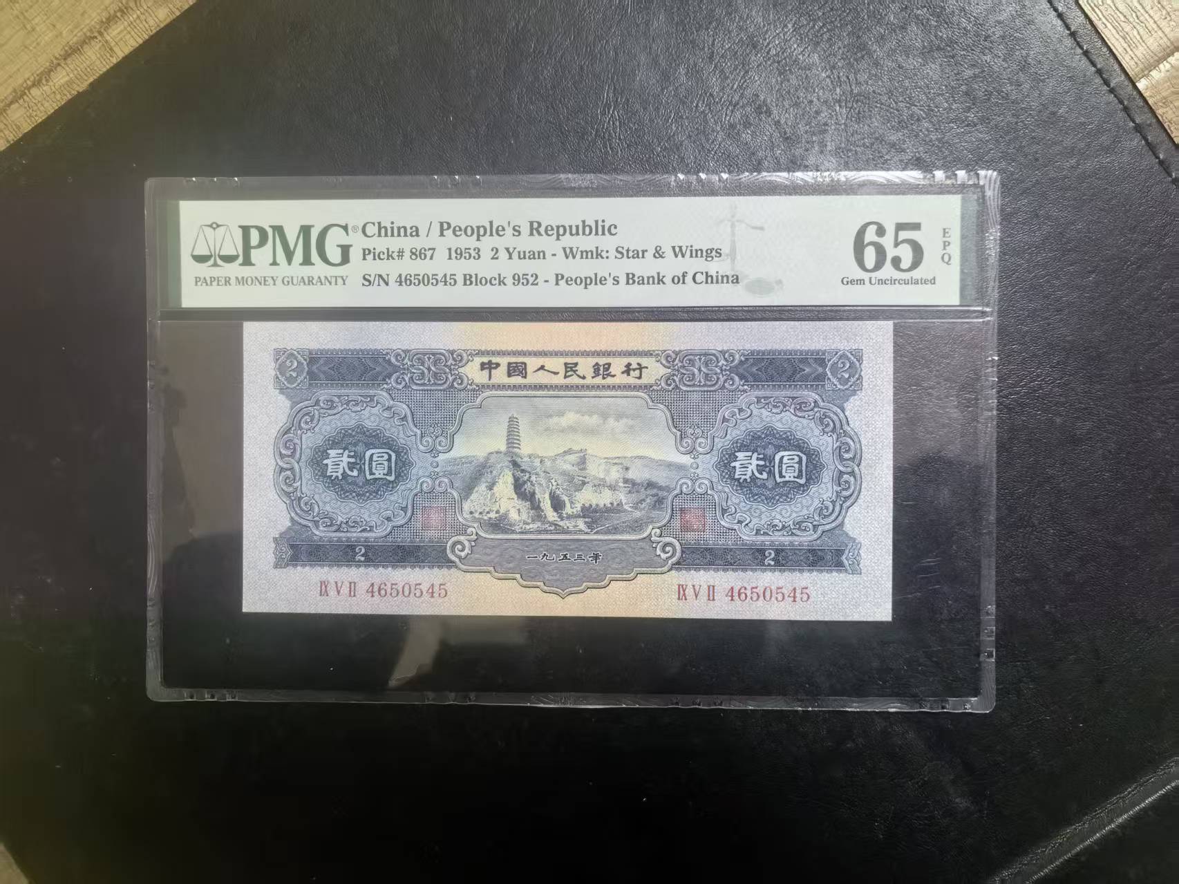 二版宝塔山全新直版原票,美评PMG65E,颜色鲜艳,票面干净平整,水印清晰,售价3180包顺丰