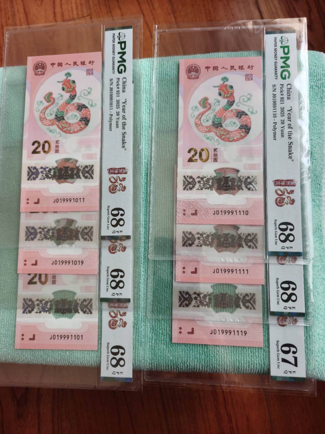 → 蛇钞 蛇钞019倒置王6张标准生日号(5张 Pmg68 1张Pmg67)通打1500/张 冬奥雪钞2021年12月标准生日号裸钞10张(通打90/张)