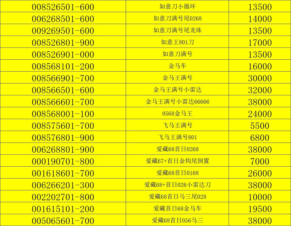 → 出马钞如意王,金马王,0168,0268,026满号标百等