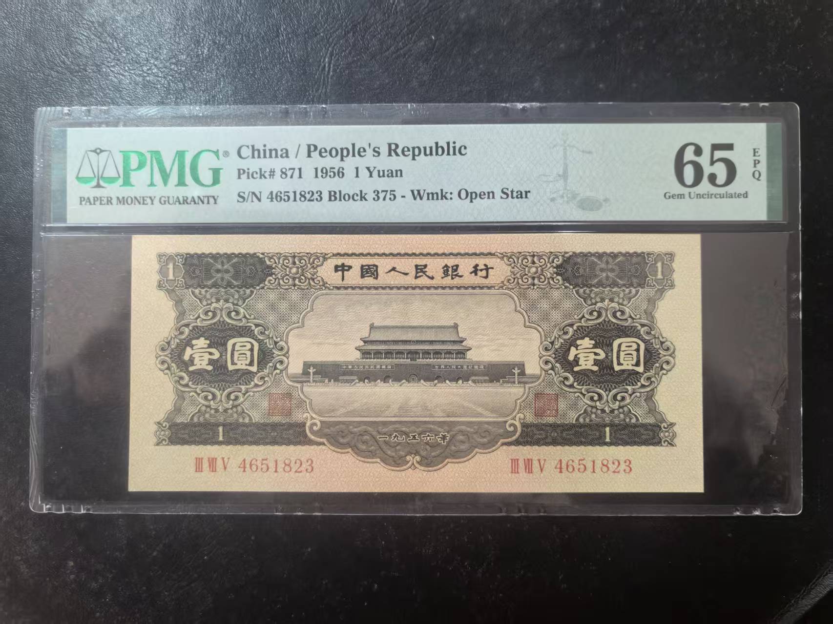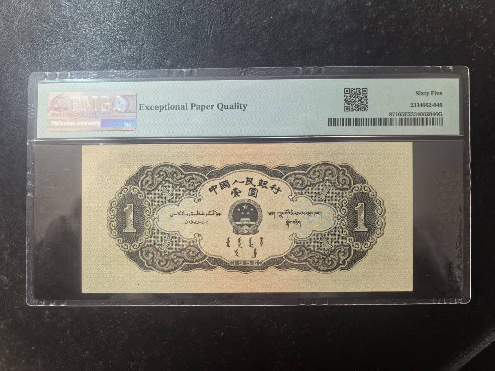 二版黑1元美评PMG65E全新直版原票,颜色鲜艳,水印清晰,售价2650包顺丰