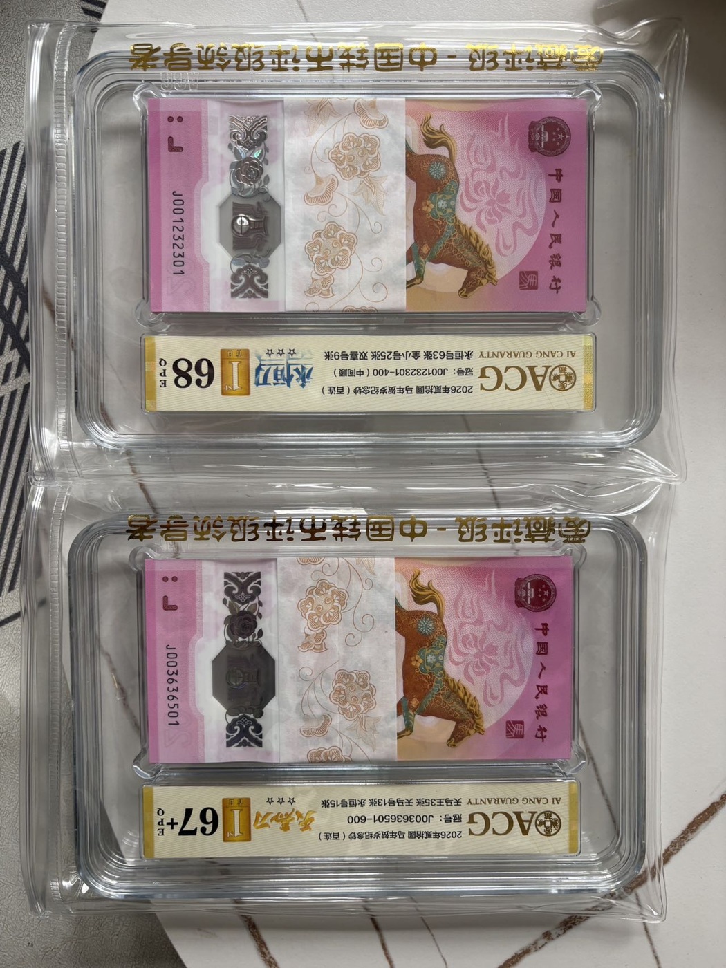 1、058015501,金福王万马奔腾,爱藏67 +,售价27800元;