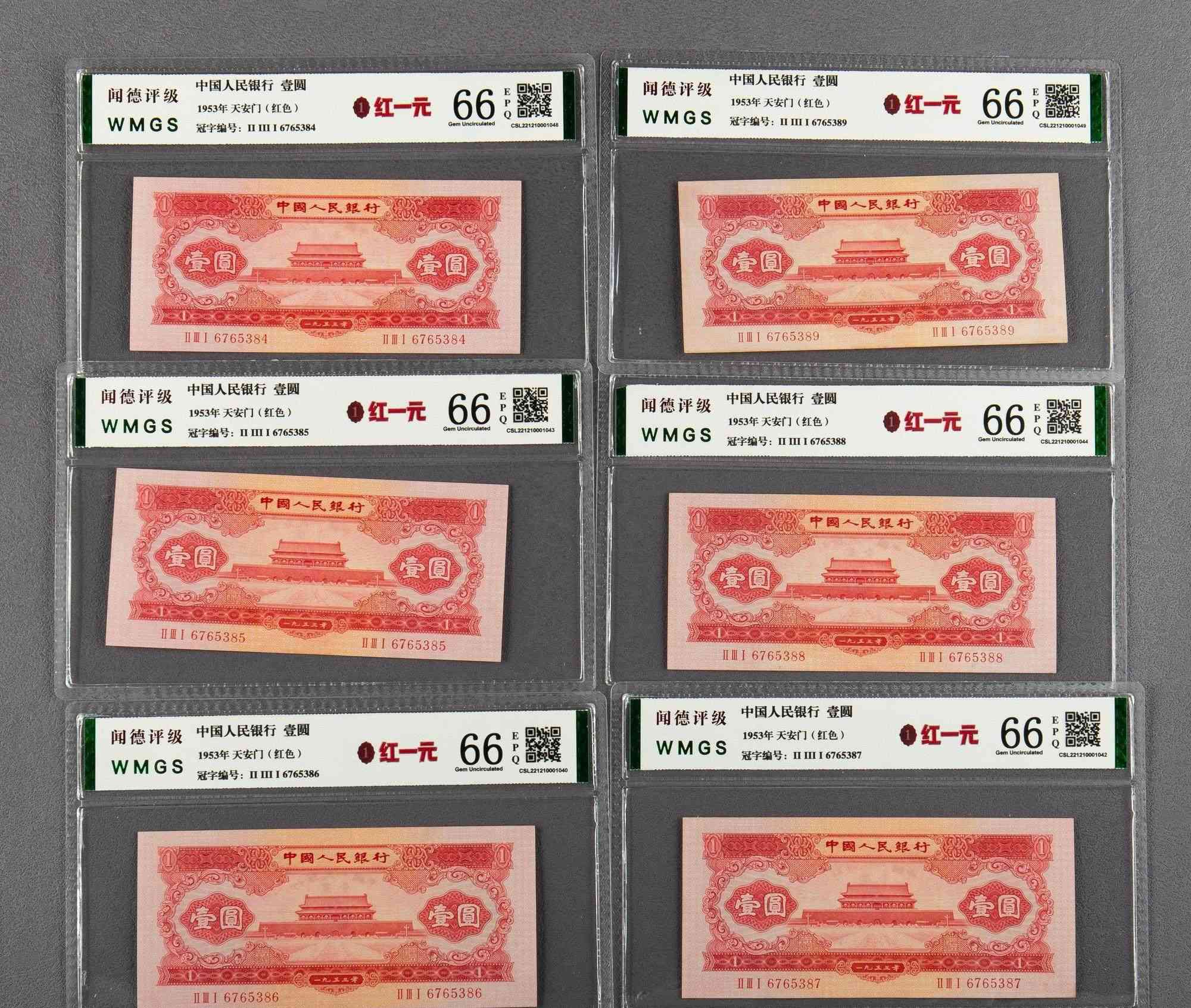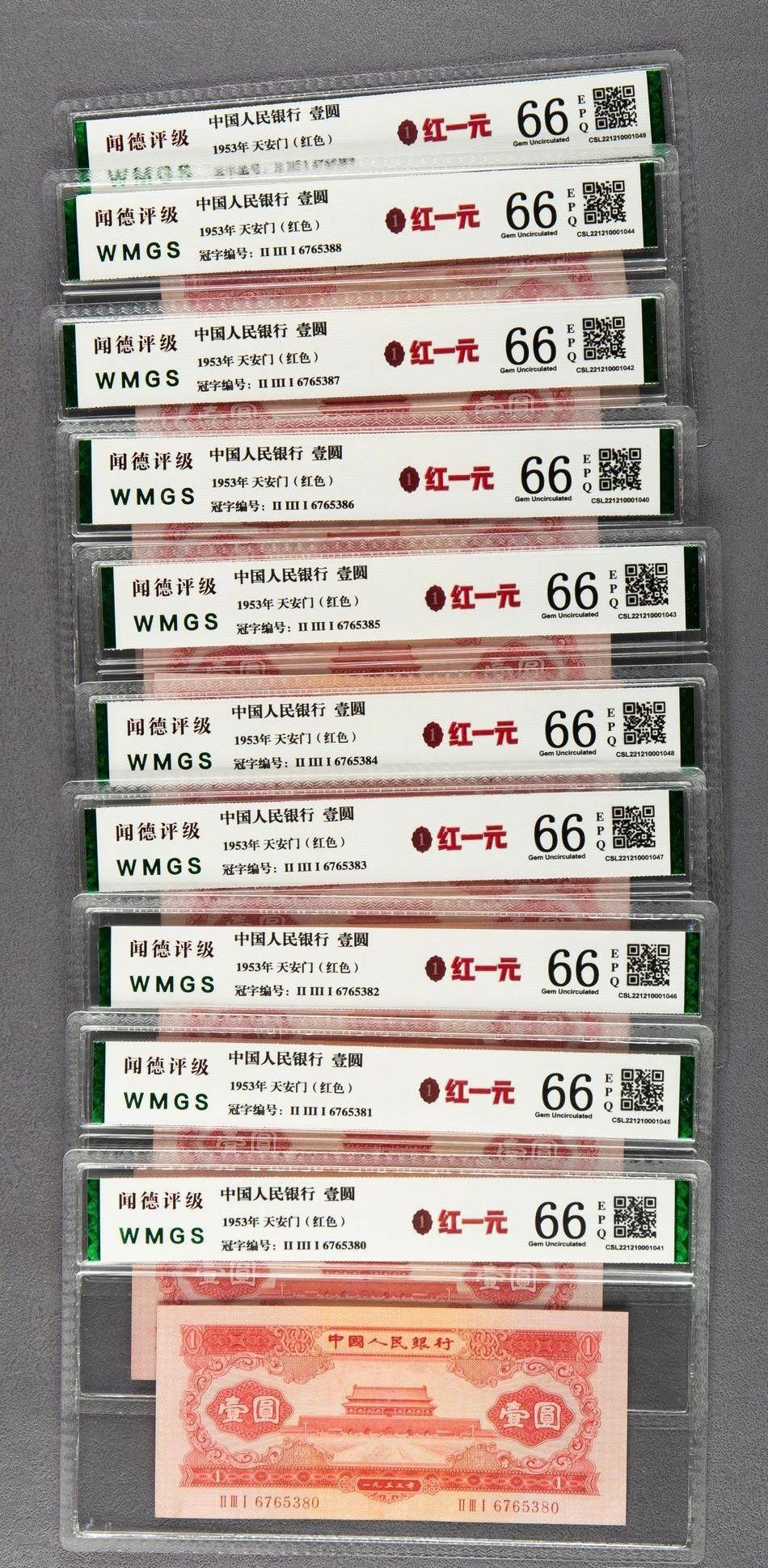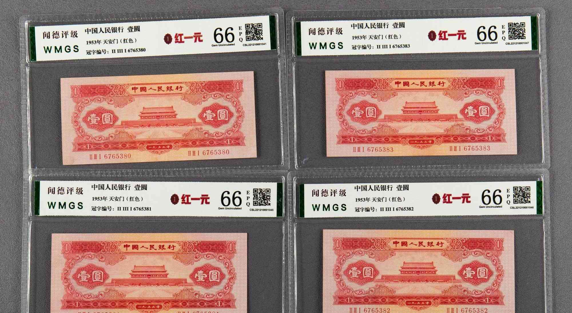 评级币红一元10连,品相佳,2300/张。