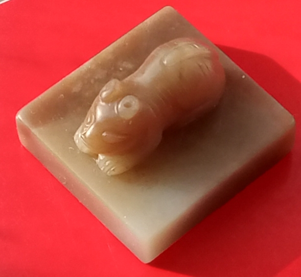 → 民国时期和田糖白玉虎钮素面印章一件