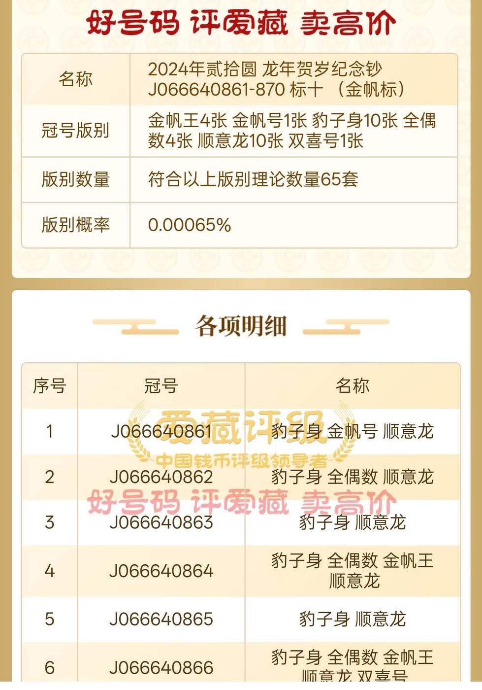 J066640864:豹子身 全偶数 金帆王 顺意龙
