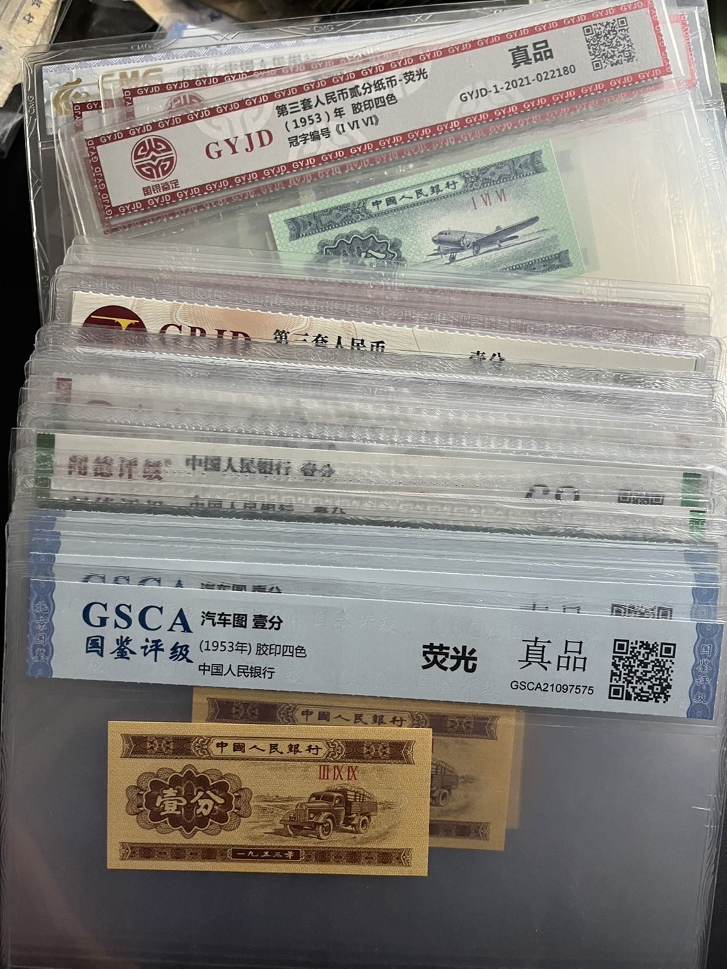 代友出32张一分,44张二分,含18K,小字,荧光,移位,祥云……总计76张,通走处理价3元一张,只卖个评级费,喜欢的来,联系确认18800292096