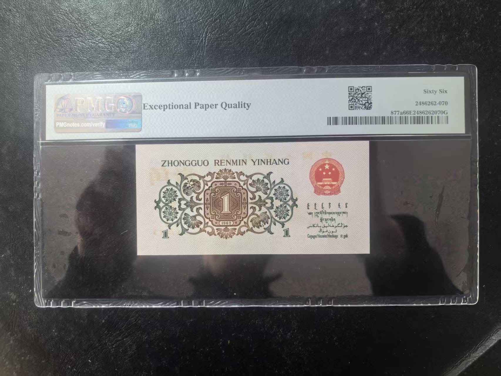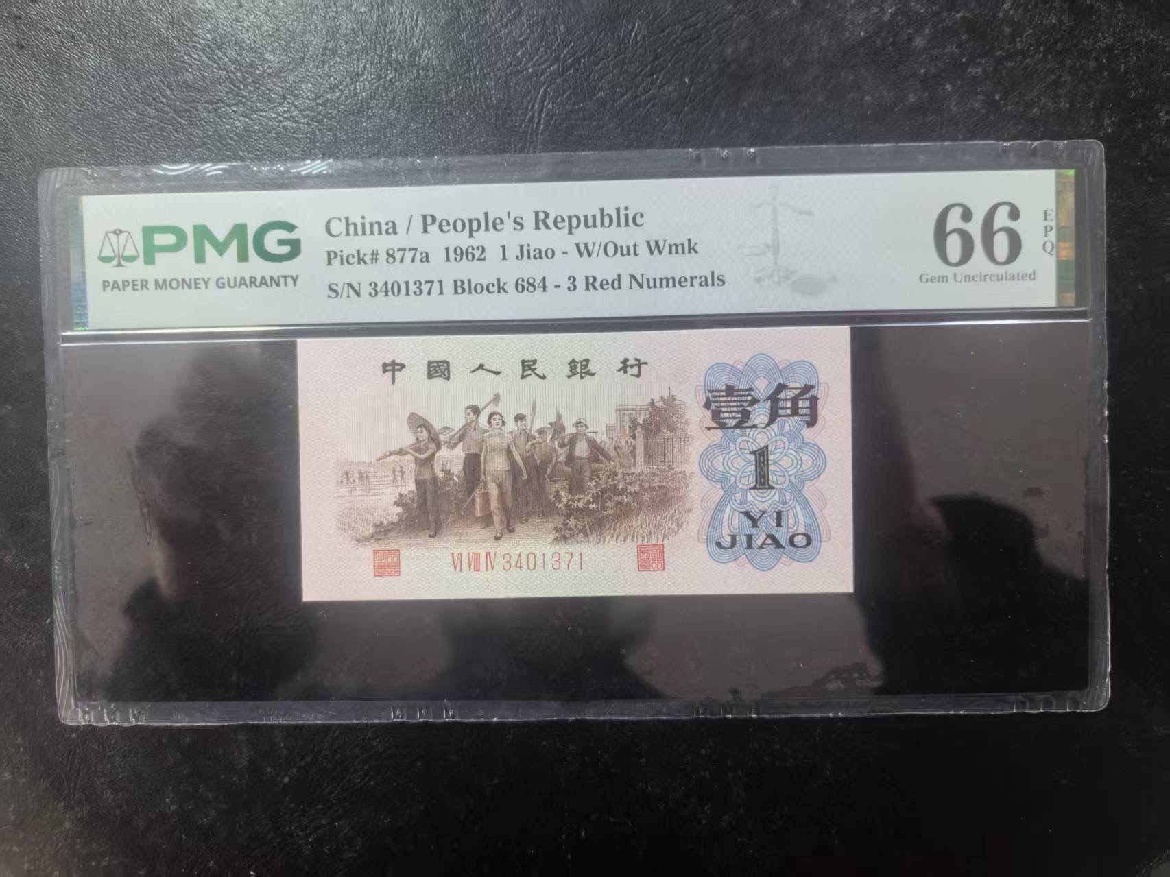 三版背绿1角美评PMG66E,全新直版原票,对光无黑线,票面干净,售价2900包顺丰