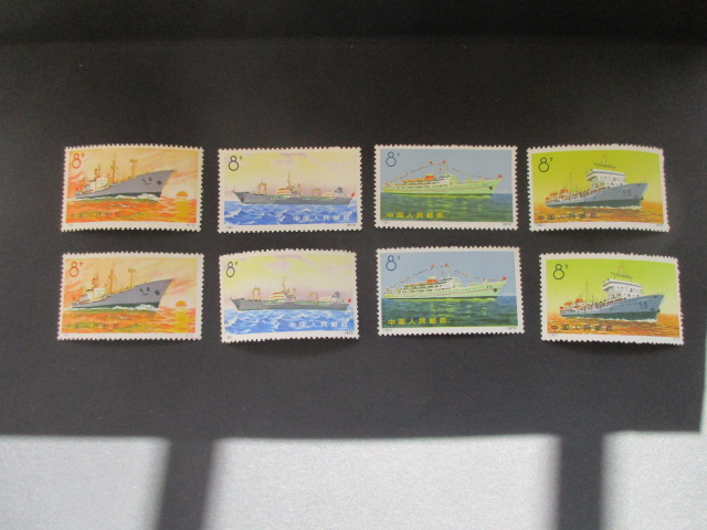 四。轮船:第一套,29号微黄,其它全品。一套350元。轮船:第二套,29号小薄,小裂口,无胶。其它3枚微黄,一套180元。