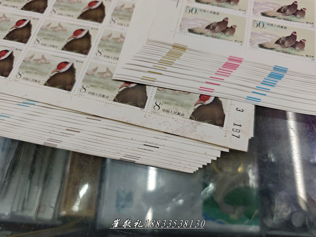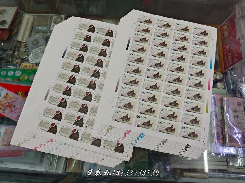 3、T134褐马鸡大版:25版×40元,原胶挺版极其轻微暗黄2-1右下角略霉,第1张稍重,其余只在边缘,