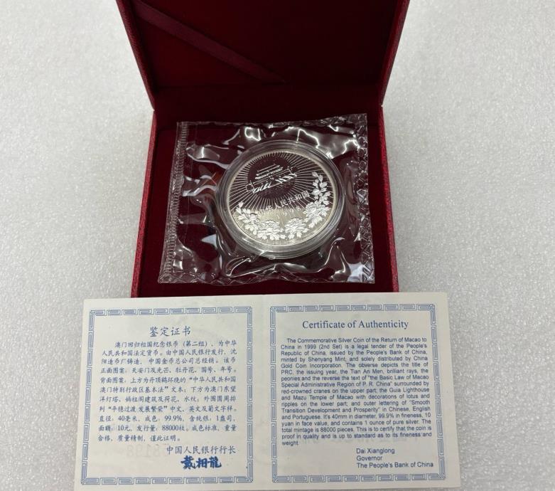 → 澳门回归第1组和2组1盎司银币各1枚(原封带证书)