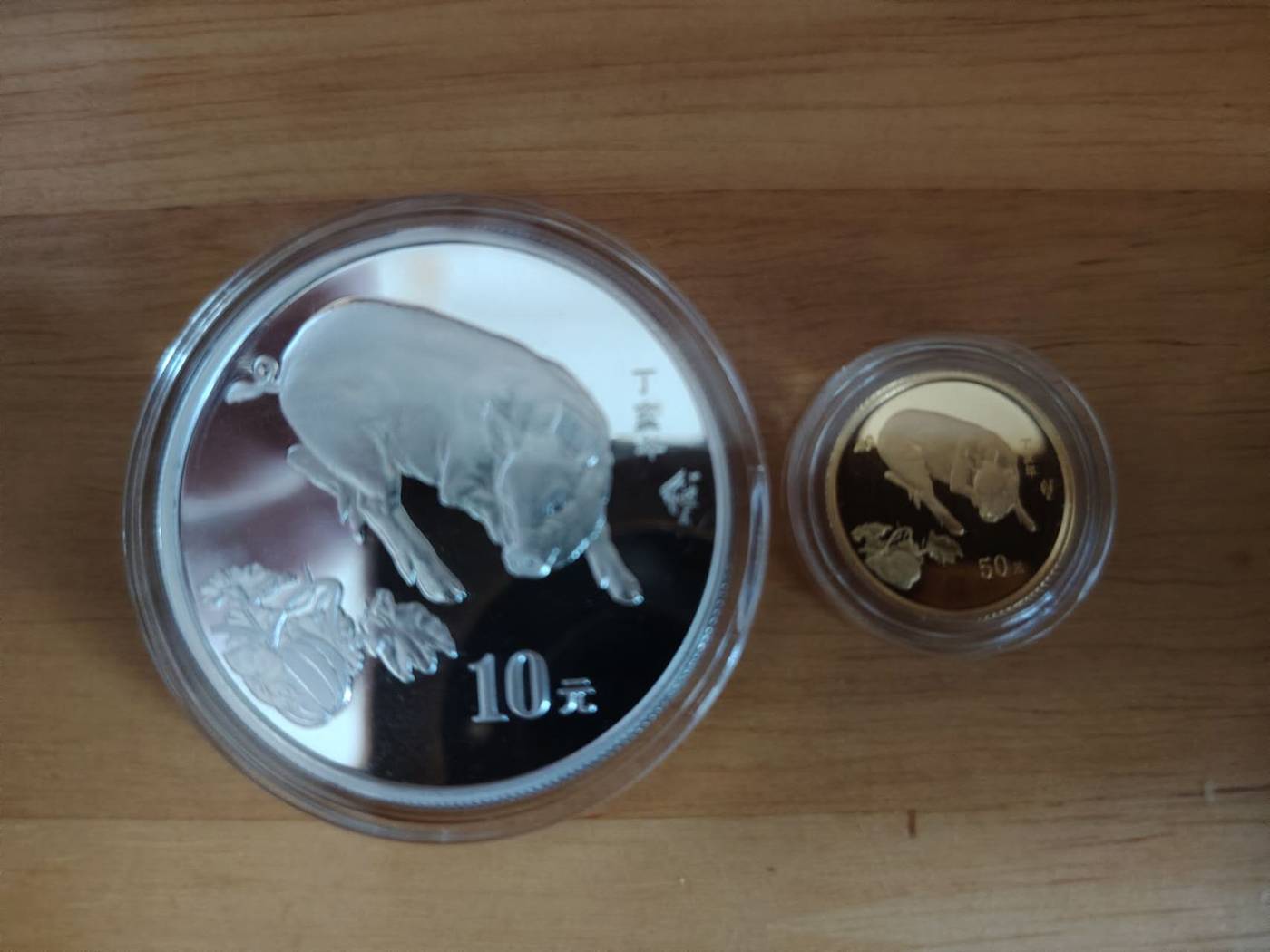 2007年本色金银猪,金币3.11克 银币31.1克。全品收藏佳品