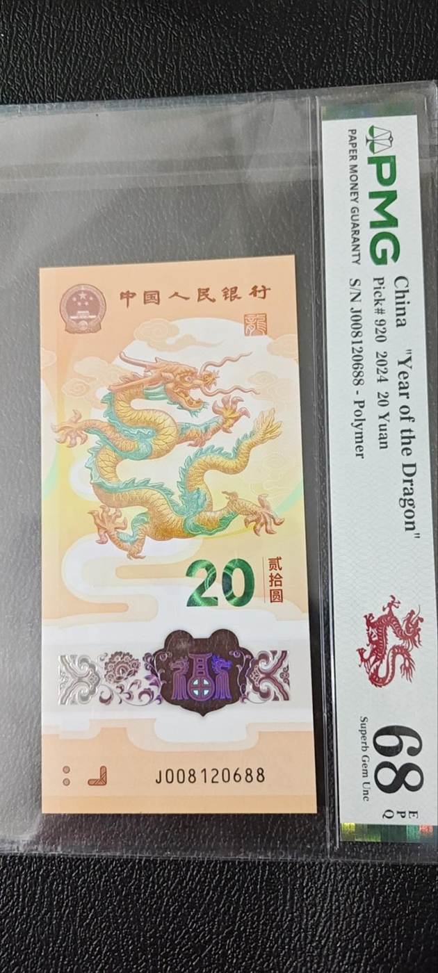 售龙钞,朦胧王尾88一张pmg68分