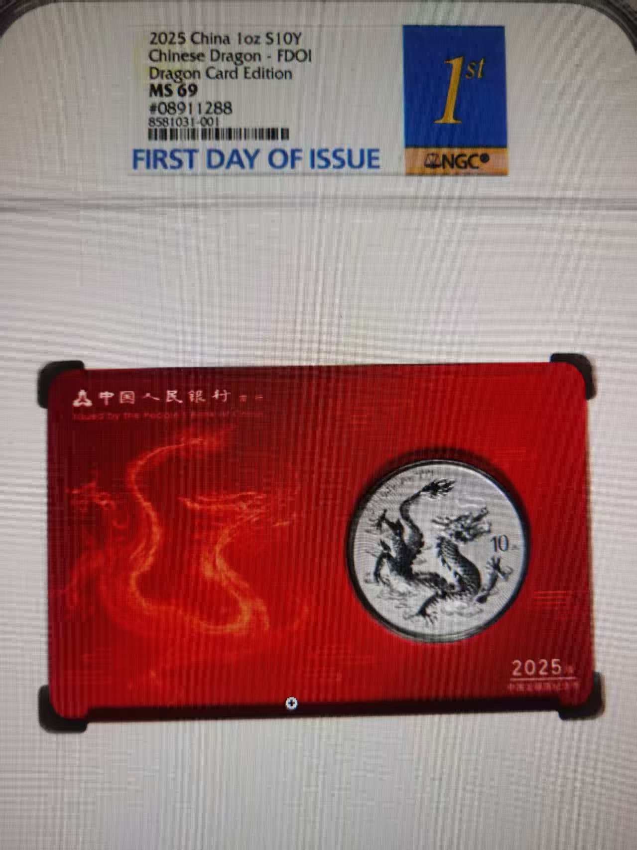二、出中国龙银币NGC评级首日金兰标69分朦胧号尾88智能卡一枚,