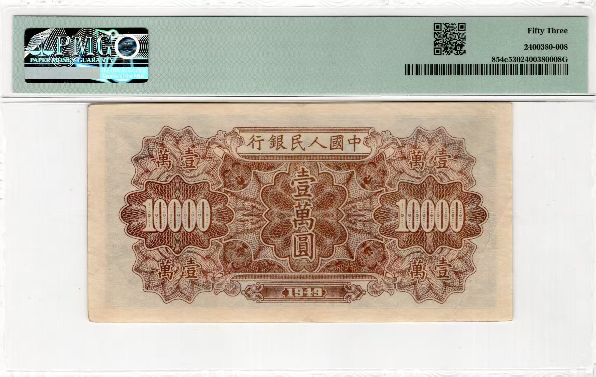 一版中高端品种大面值军舰首发冠,美评PMG53对子身顺子尾,开门原票菱花水印,售价5680包顺丰