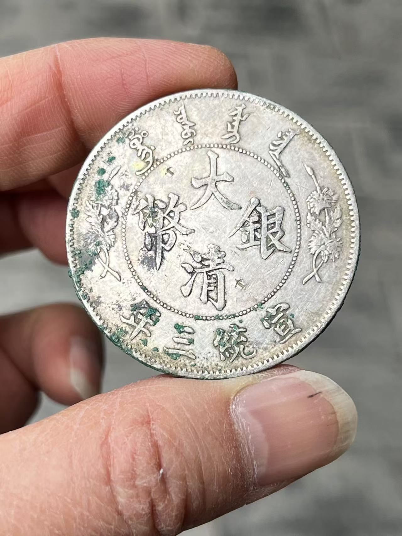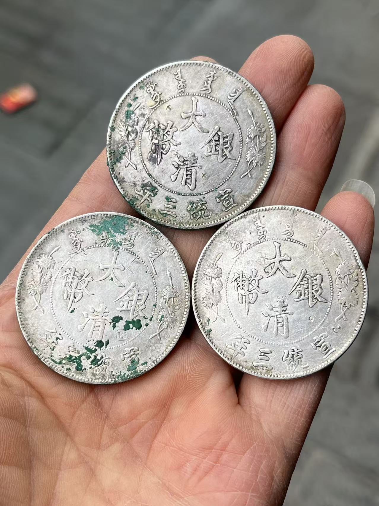 → 大清3枚,都是老包浆全边齿,无腐蚀,有小戳,整体品相好