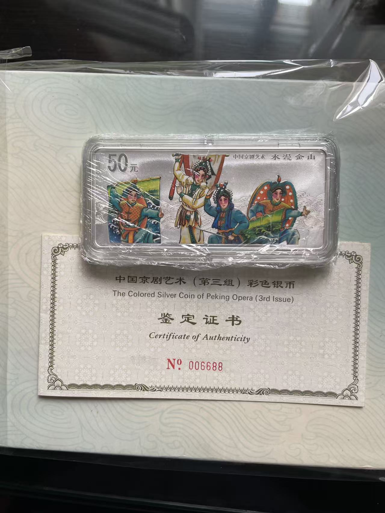 5盎司彩银币京剧一杨门女将、京剧三水漫金山、京剧四挑滑车各1套,价4600元/套。