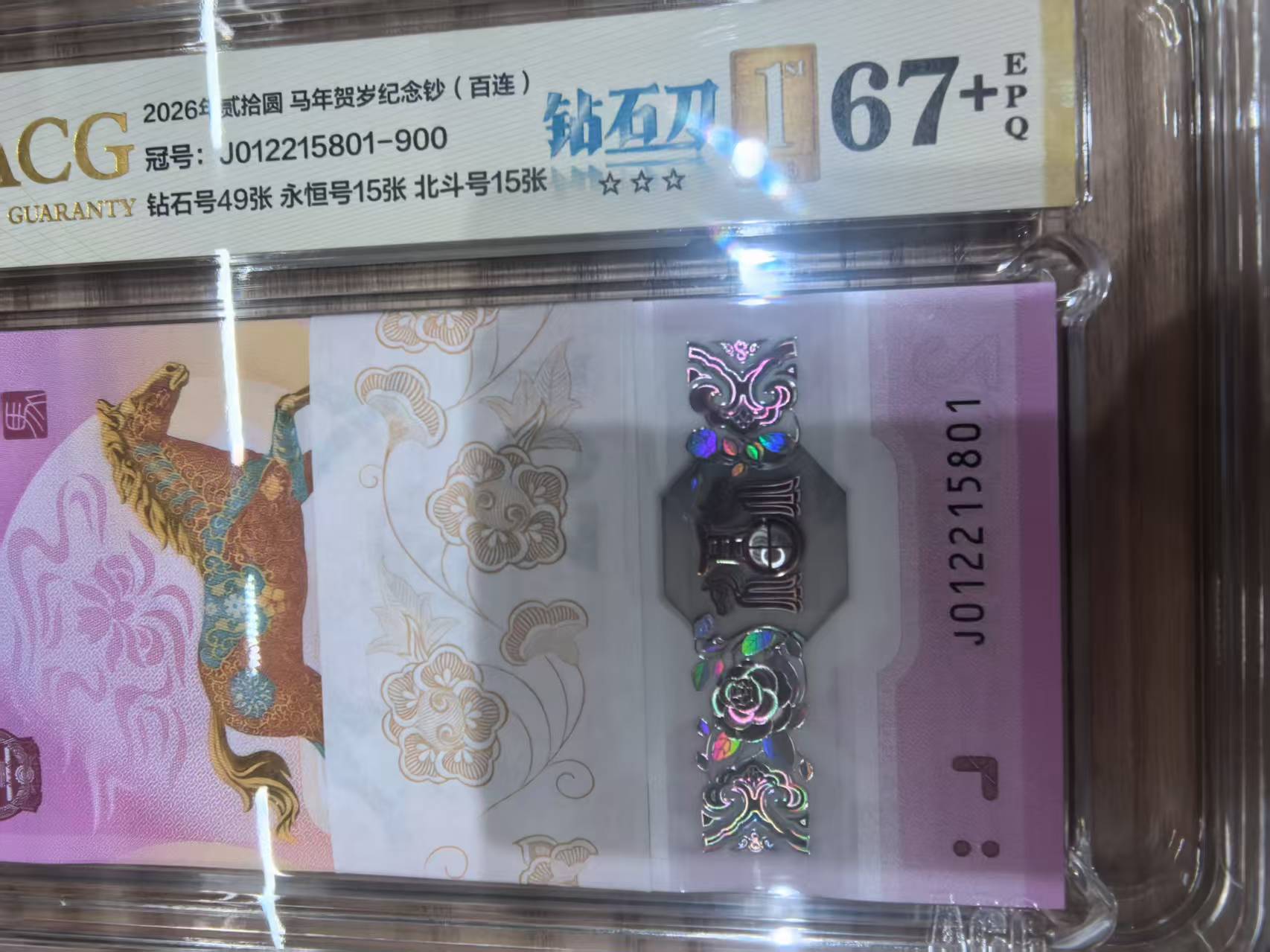 出一刀无347的012215801整刀,爱藏三星67+,价格18000元