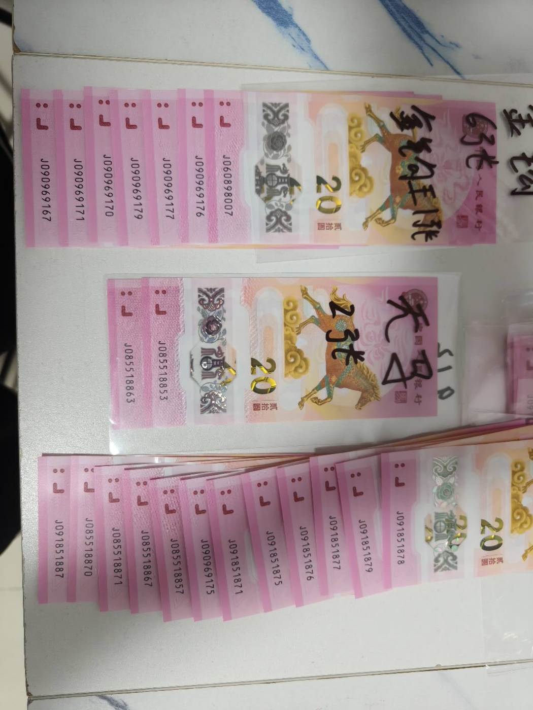 金钩王1张,金钩号6张,天马2张,飞马12张基本都是满号