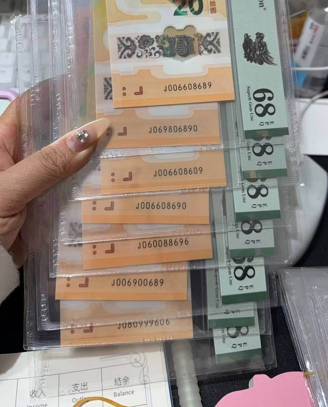 如图出龙钞圆圆号pmg68共七张